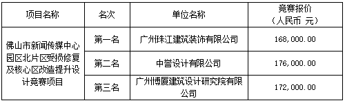 佛山市新聞傳媒中心園區(qū)北片區(qū)受損修復(fù)及核心區(qū)改造提升設(shè)計(jì)中選公告